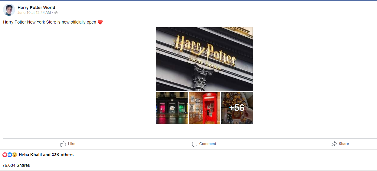 وتداول رواد مواقع التواصل الاجتماعي “فيسبوك” في نيويورك، يتخطى عددهم الـ 33 ألف مستخدم لمنصة السوشيال ميديا، عدة لقطات مصورة من داخل متجر هاري بوتر، والتي نالت إعجاب الكثيرين وشجعت آخرين على زيارته خلال الشهر الجاري.