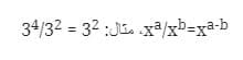 - قِسمة الأسس: عند قسمة أسين لهما نفس الأساس، فإننا نطرح الأسين من بعضهما وطبعًا لنفس الأساس، أي: