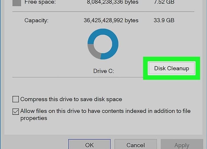- اضغط على خيار "تنظيف القرص Disk Clean up"