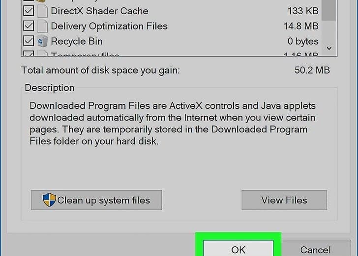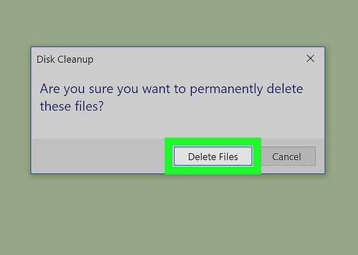 - انقر على خيار "حذف الملفات Delete Files" لتُحذف كافة الملفات وتحصل بذلك على مساحة حرة إضافية على القرص C.