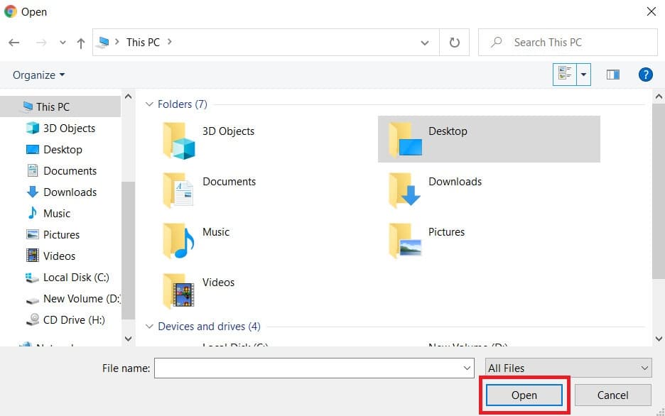 ستظهر لك نافذة جديدة حدد من خلالها الملف الذي تريد إرساله عبر الإيميل واضغط فتح.
