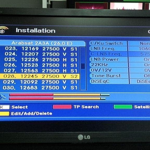 - ستظهر لك قائمة تضم بيانات وتفاصيل التردّدات، فاختر منها ما يوصلك إلى TP Edit (بالنقر أحد الأزرار الملونة من جهاز التحكم، غالبًا الزر الأصفر).