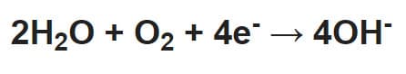 تتحد الإلكترونات مع الماء والأوكسجين في الخرسانة ويُطلق عليه تفاعل الاختزال الذي يحدث عند الكاثود: