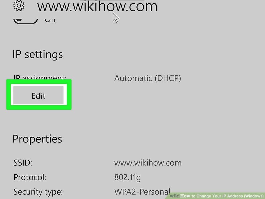 اضغط على تحرير Edit ضمن عنوان IP assignment.
