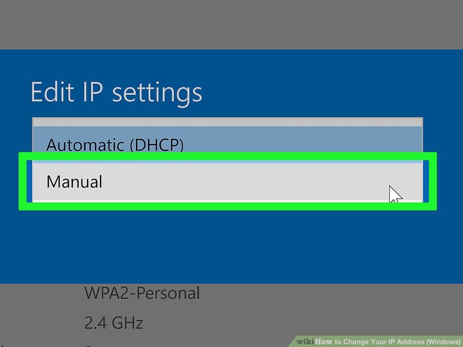 يمكن تعديل عنوان ال IP للشبكة اللاسلكية أو السلكية من خلال الإعدادات واختيار خصائص الاتصال وتحرير تعيين عنوان IP.